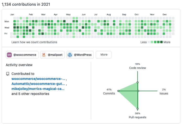 My contributions in the WooCommerce org were mainly within the WooCommerce Blocks repo. We’ve been building out both the new Cart and Checkout experience and the Store API that powers it—this will eventually land in WooCommerce core.